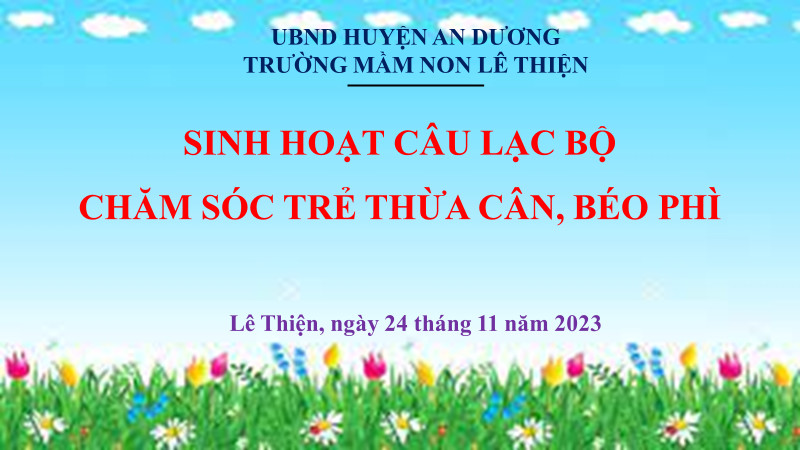 Chiều ngày 24 tháng 11 năm 2023, trường mầm non Lê Thiện tổ chức sinh hoạt Câu lạc bộ chăm sóc trẻ thừa cân, béo phì nhằm tuyên truyền, chia sẻ tới các bậc phụ huynh những kinh nghiệm, kiến thức, kỹ năng chăm sóc trẻ thừa cân, béo phì.