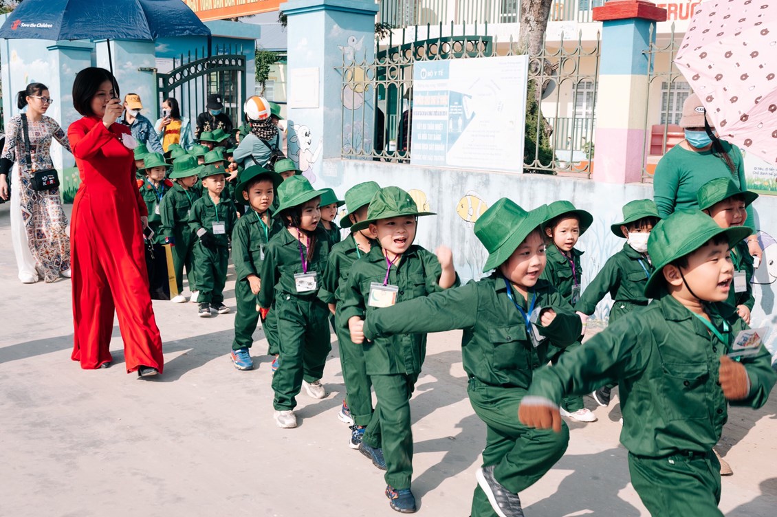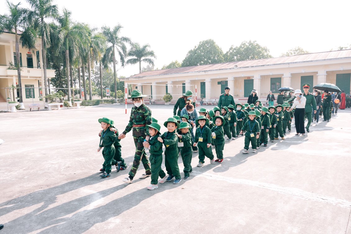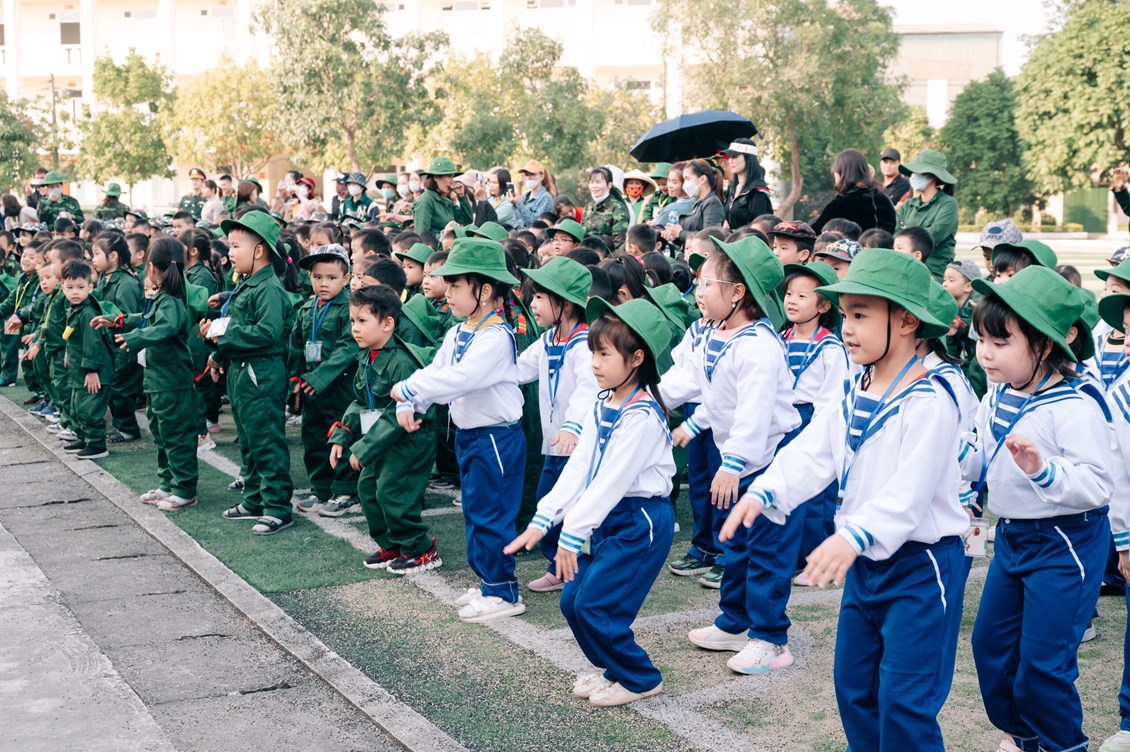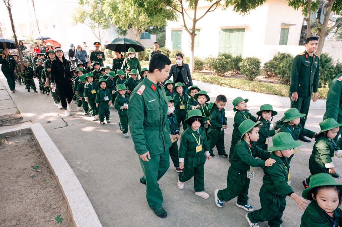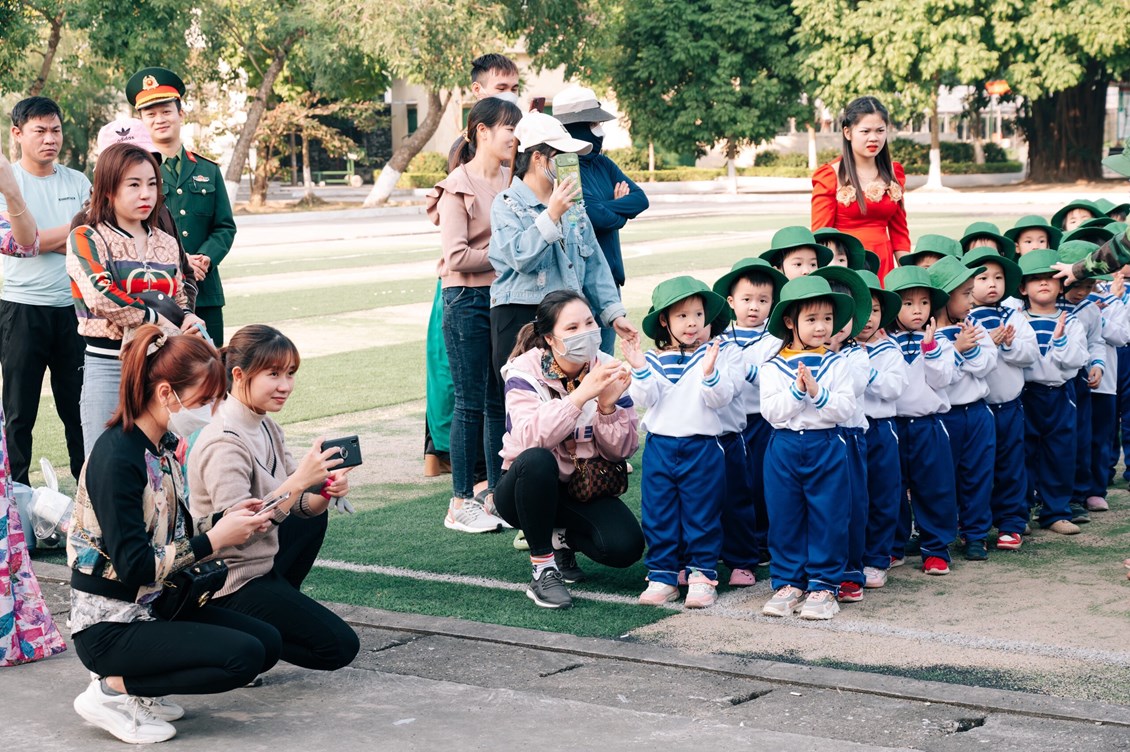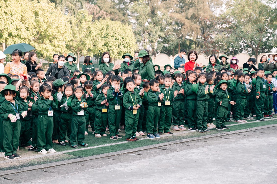 Đúng 14 giờ ngày 15/12/2022 xe chở cô trò tại 4 điểm trường xuất phát và có mặt tại Lữ đoàn. Buổi thăm quan với sự tham gia của với 343 cháu 4 tuổi và 5 tuổi; 31 cán bộ, giáo viên, nhân viên, 46 phụ huynh;
