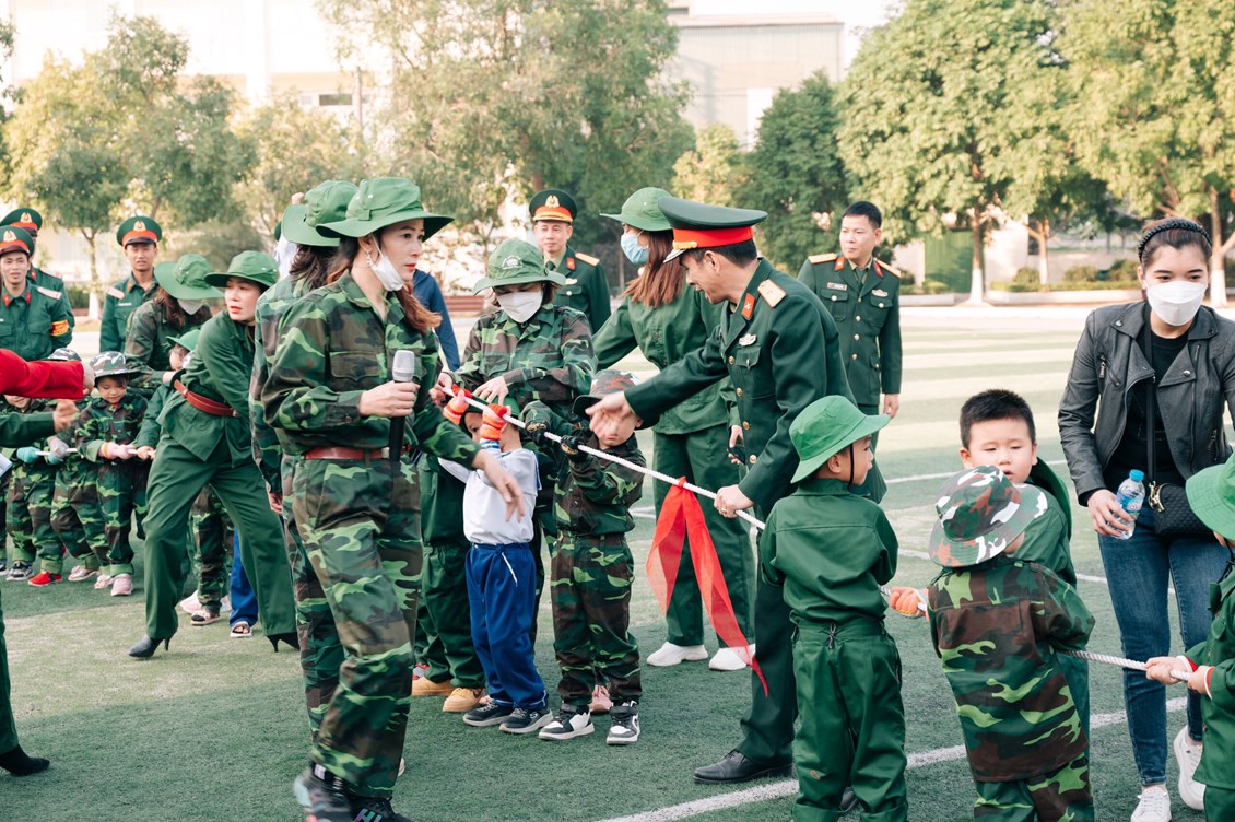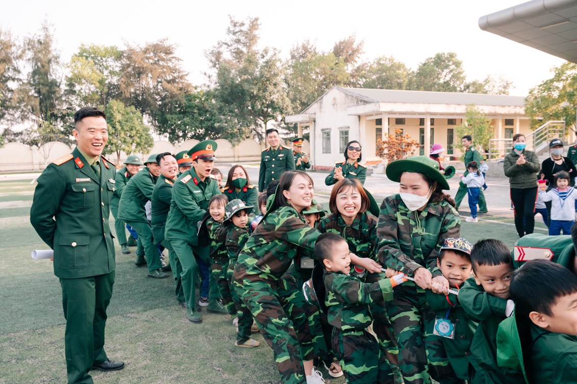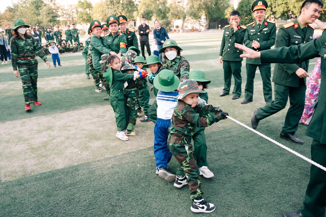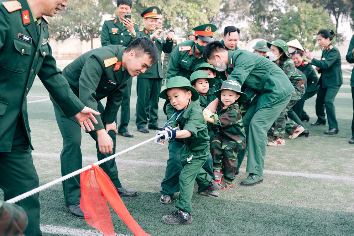 Các bé được vui chơi: Nhảy theo điệu nhạc, kéo co cùng các chú bộ đội. Các trò chơi được các bé cũng như các cô chú bộ đội rất hào hứng tham gia