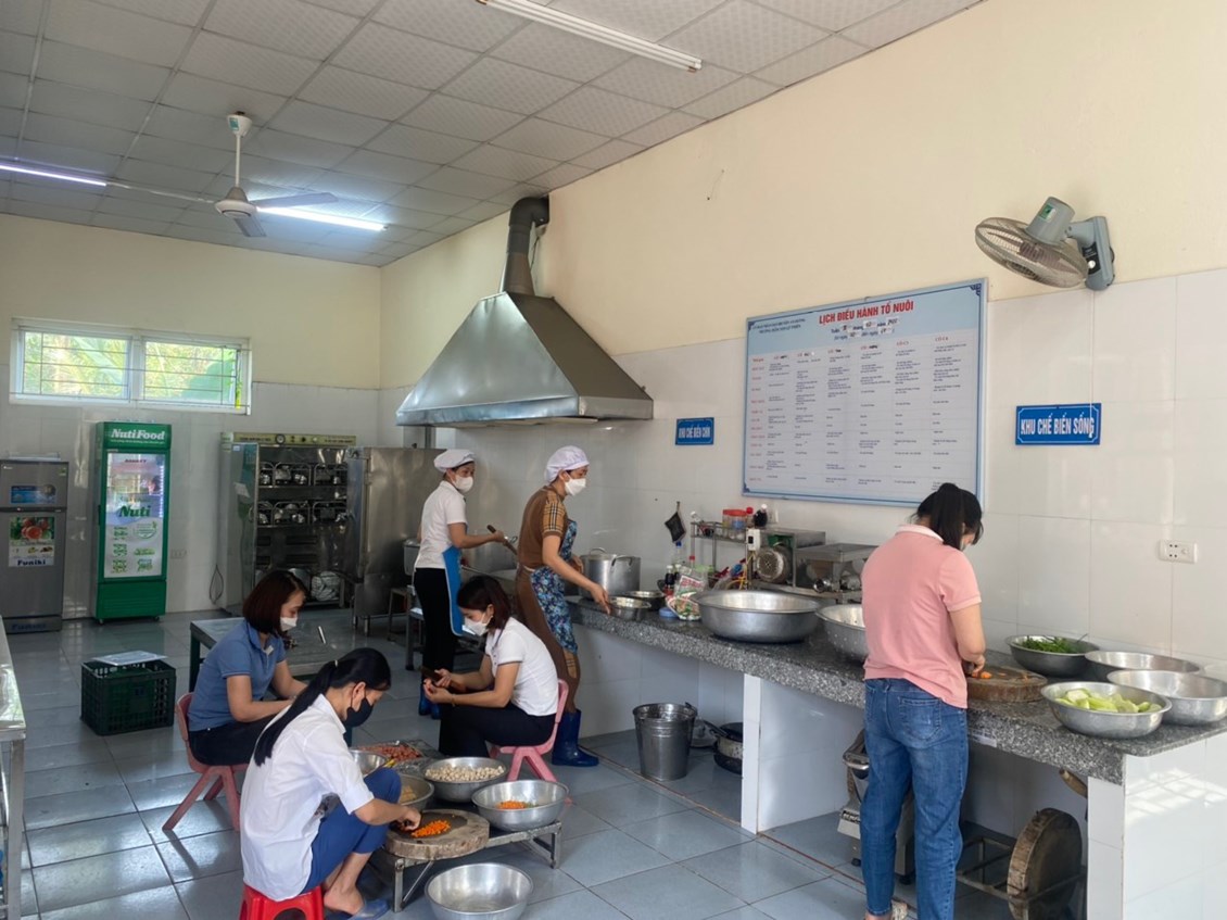 - Từ sáng sớm các cô nuôi, cùng với 1 số phụ huynh và giáo viên đã cùng nhau sơ chế và chế biến những món ăn theo thực đơn buffet của trẻ.