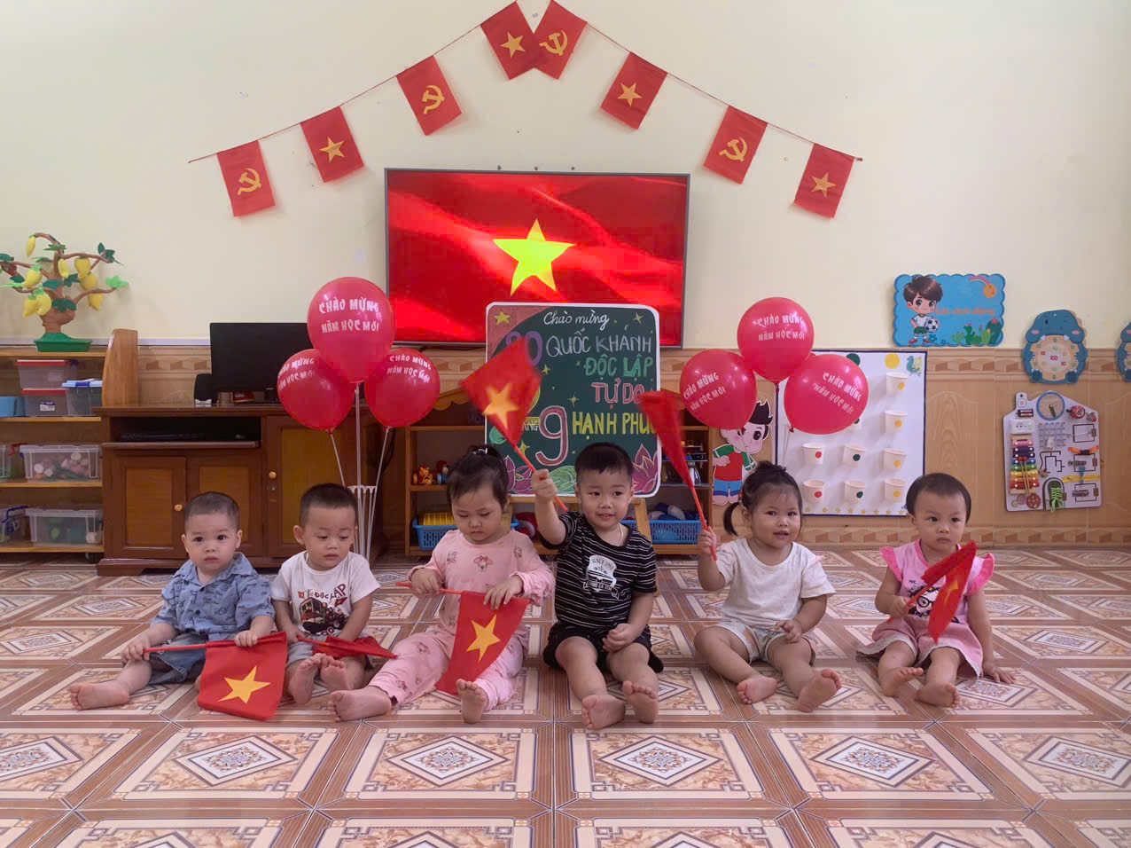 Không khí rộn ràng của ngày Tết Độc lập 2/9 đã tràn đến lớp NT3 Trường mầm Lê Thiện.