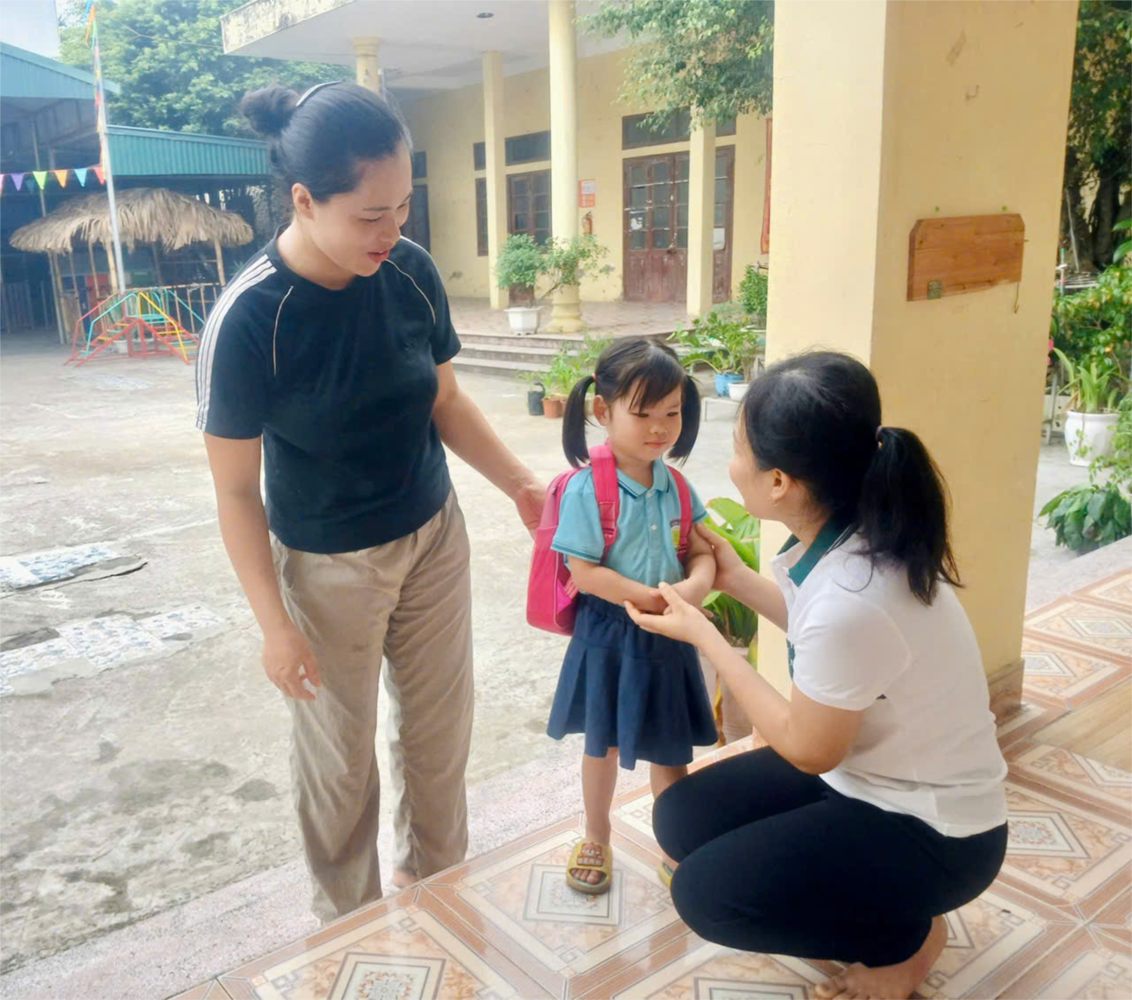 Các bé được các cô giáo chào đón thân thiện, gần gũi