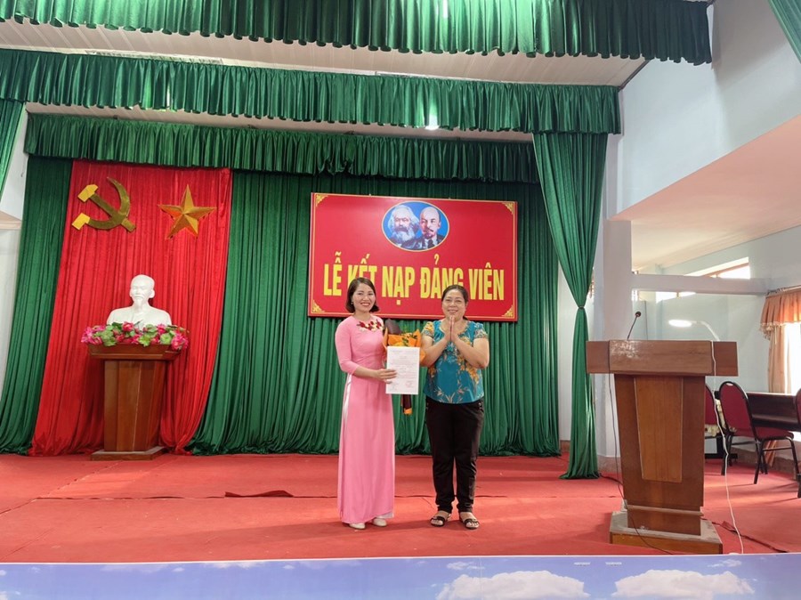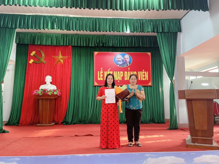 Tại buổi lễ đồng chí Lưu Thị Nhiệm - Bí thư chi bộ trao quyết định cho đảng viên mới đồng thời nói rõ nhiệm vụ quyền hạn của Đảng viên mới và phân công nhiệm vụ cho các đồng chí đảng viên trong chi bộ giúp đỡ 6 đồng chí để 6 đồng chí trở thành đảng viên chính thức.