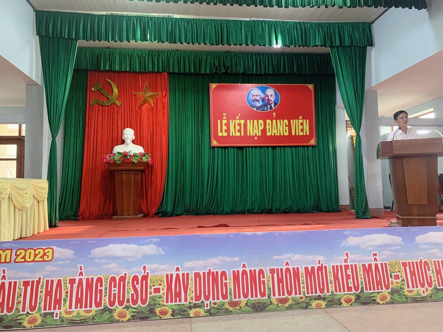 Lễ kết nạp được diễn ra trong không khí trang nghiêm cùng với sự tham gia của các đồng chí trong ban thường vụ đảng uỷ xã Lê Thiện: