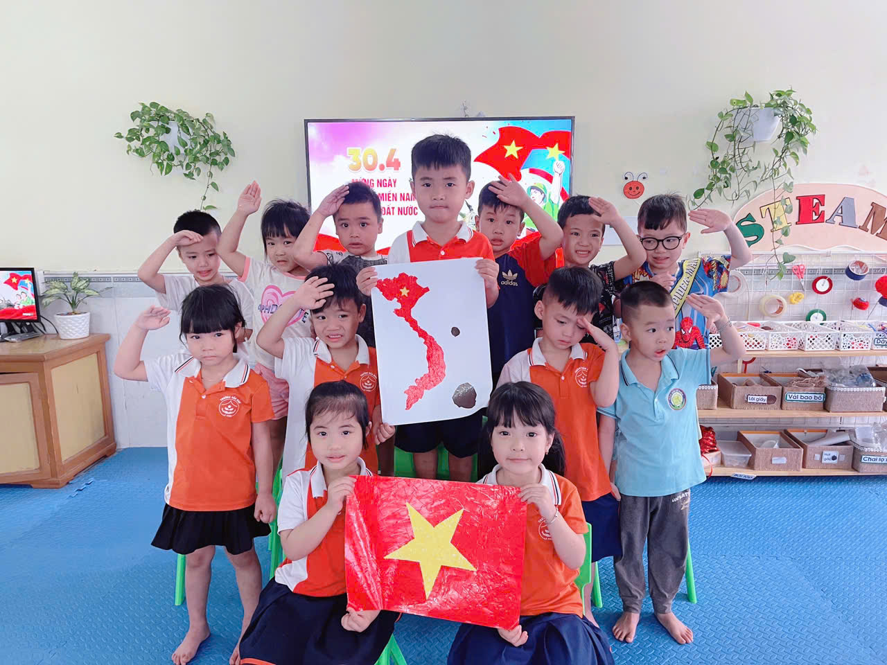 Trong không khí phấn khởi vui tươi hòa cùng âm vang hào hùng của ngày đại thắng. Tuy không sinh ra trong những tháng ngày chiến tranh tàn khốc, nhưng qua các hình ảnh, những thước phim, những bài thơ câu chuyện... đã cho các con phần nào cảm nhận được sự hy sinh cao cả, sự kiêu hùng của dân tộc ta trước giặc ngoại xâm. Các con đã học được lòng biết ơn, học cách trân trọng hòa bình và yêu quê hương đất nước. Chỉ là một hoạt động nhỏ nhưng sẽ là hành trình ký ức, được tiếp nối bằng yêu thương và sự giáo dục nhẹ nhàng, sâu sắc, mỗi một mảnh giấy dán vào hình lá cờ, dán vào hình tổ quốc, như một lời khẳng định rằng: Dù là thế hệ nào, thì trong tim mỗi người con đất Việt luôn cháy rực tình yêu Tổ quốc!