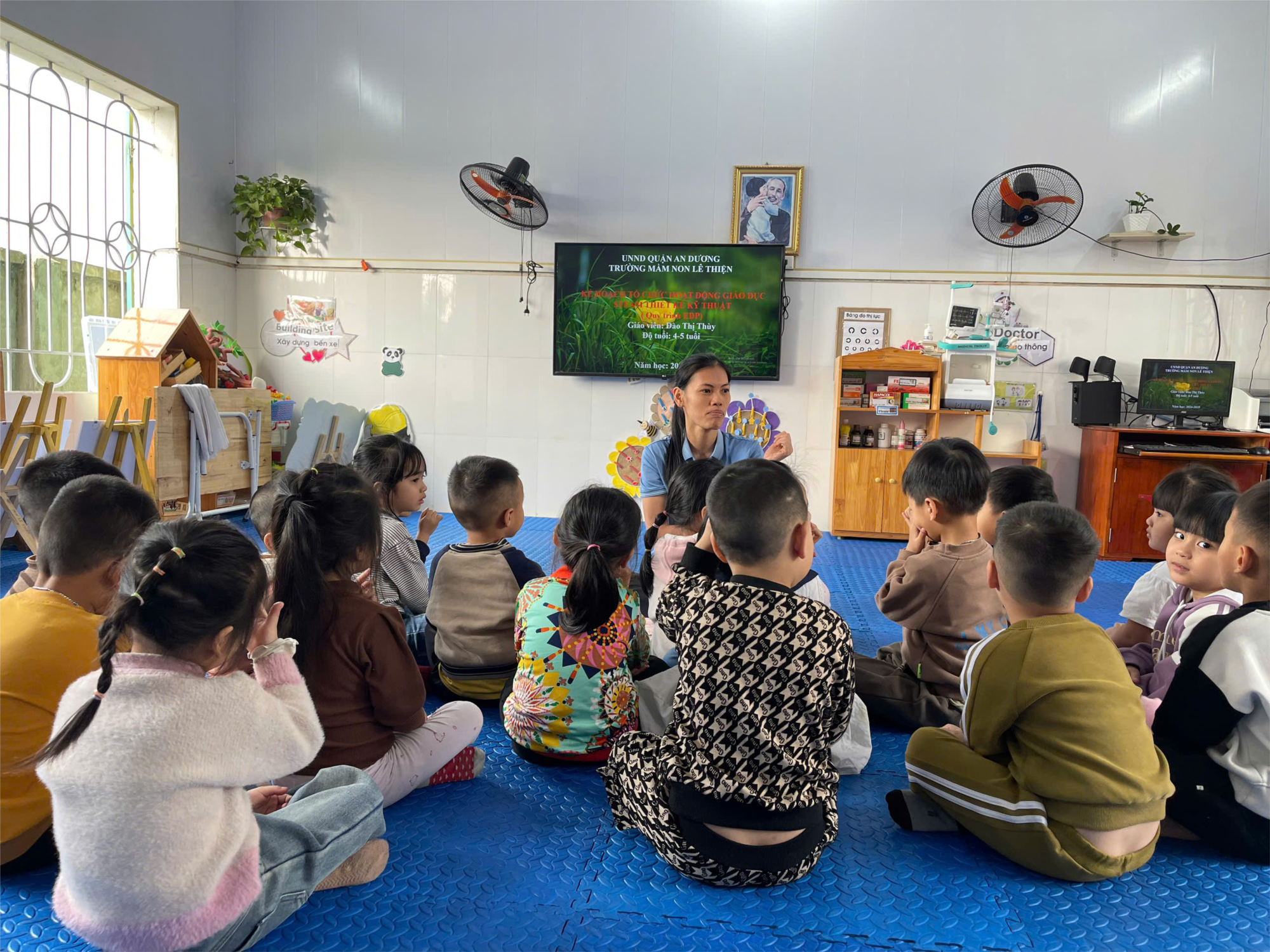 Hiện nay, nhằm tiếp tục thực hiện đổi mới hoạt động chăm sóc - giáo dục, nâng cao chất lượng chương trình giáo dục mầm non (GDMN), ngay từ đầu năm học trường mầm non Lê Thiện thực hiện có hiệu quả việc đổi mới hoạt động chăm sóc, giáo dục trẻ theo quan điểm giáo dục toàn diện, tích hợp, lấy trẻ làm trung tâm; tăng cường hoạt động vui chơi, tạo cơ hội để trẻ được trải nghiệm, khám phá; chú trọng giáo dục hình thành và phát triển kỹ năng sống phù hợp với độ tuổi của trẻ. Trẻ được học các tiết Steam vui vẻ hứng thú sau đây là một số hình ảnh tiết học làm bè nổi của các bé lớp 4B1: