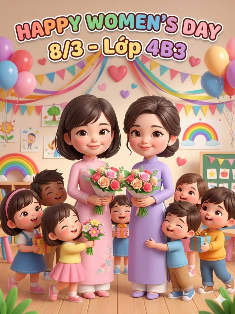 Hòa chung không khí vui tươi chào mừng Ngày Quốc tế Phụ nữ 8/3, các bé lớp 4B3 đã tham gia hoạt động vô cùng ý nghĩa: tô vẽ tranh tặng cô giáo và mẹ yêu.Với những đôi bàn tay nhỏ xinh và trí tưởng tượng phong phú, các bé đã tự tay tô những bức tranh đầy màu sắc. Trong tranh là hình ảnh bó hoa tươi thắm, trái tim yêu thương, cô giáo hiền dịu và người mẹ thân yêu. Mỗi nét tô, mỗi màu sắc đều thể hiện tình cảm ngây thơ, trong sáng của các bé dành cho những người phụ nữ mà các con yêu quý. Thông qua hoạt động này, các bé không chỉ được rèn luyện kỹ năng tô màu, phát triển khả năng sáng tạo và thẩm mỹ, mà còn được giáo dục tình cảm biết yêu thương, kính trọng và biết ơn mẹ và cô giáo – những người luôn chăm sóc và dạy dỗ các con mỗi ngày.Những bức tranh tuy còn giản dị nhưng chứa đựng tình cảm chân thành và đáng yêu của các bé. Đây chính là những món quà nhỏ bé nhưng đầy ý nghĩa mà các con muốn gửi tới cô giáo và mẹ nhân ngày 8/3 thông qua 1 số hình ảnh sinh đông dưới đây của chúng con ạ!