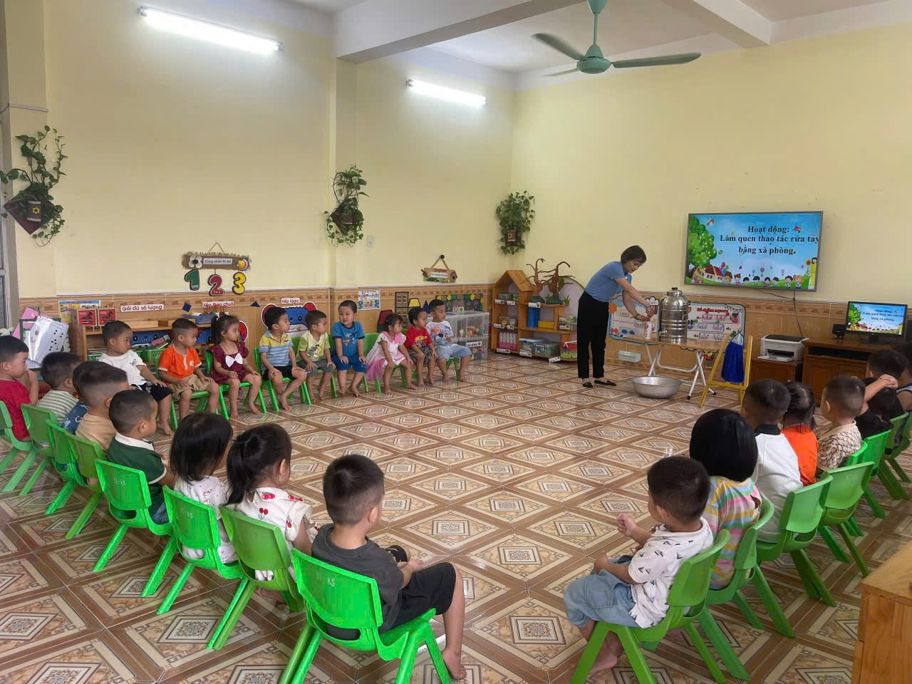 Công tác chăm sóc giáo dục vệ sinh cá nhân trẻ trong độ tuổi mầm non là việc làm thiết thực nhằm giúp trẻ có nền nếp thói quen vệ sinh là một cách hiệu quả để chủ động phòng ngừa bệnh tật, tăng cường sức khỏe, hình thành những kỹ năng sống cơ bản đầu tiên, góp phần tạo nguồn lực có chất lượng trong tương lai và nhất là trong giai đoạn dịch bệnh. Và rửa tay bằng xà phòng là một việc không thể thiếu với mỗi con người cũng như cá nhân trẻ. Bàn tay là nơi phát tán vi khuẩn nhiều hơn bất cứ bộ phận nào trên cơ thể. Do đó rửa tay thường xuyên bằng xà phòng và rửa đúng cách theo các bước của bộ y tế, việc rửa tay thường xuyên đóng vai trò vô cùng quan trọng trong việc đảm bảo vệ sinh, Thói quen này sẽ giúp chúng ta không bị lây nhiễm mầm bệnh đặc biệt cần thiết khi trẻ thường dùng tay bẩn để bốc thức ăn và hầu như không ý thức về việc phải rửa tay trước. Trẻ rửa tay trước khi ăn, sau khi đi vệ sinh, rửa tay khi tay bẩn, sau khi chơi cùng động vật nuôi,…