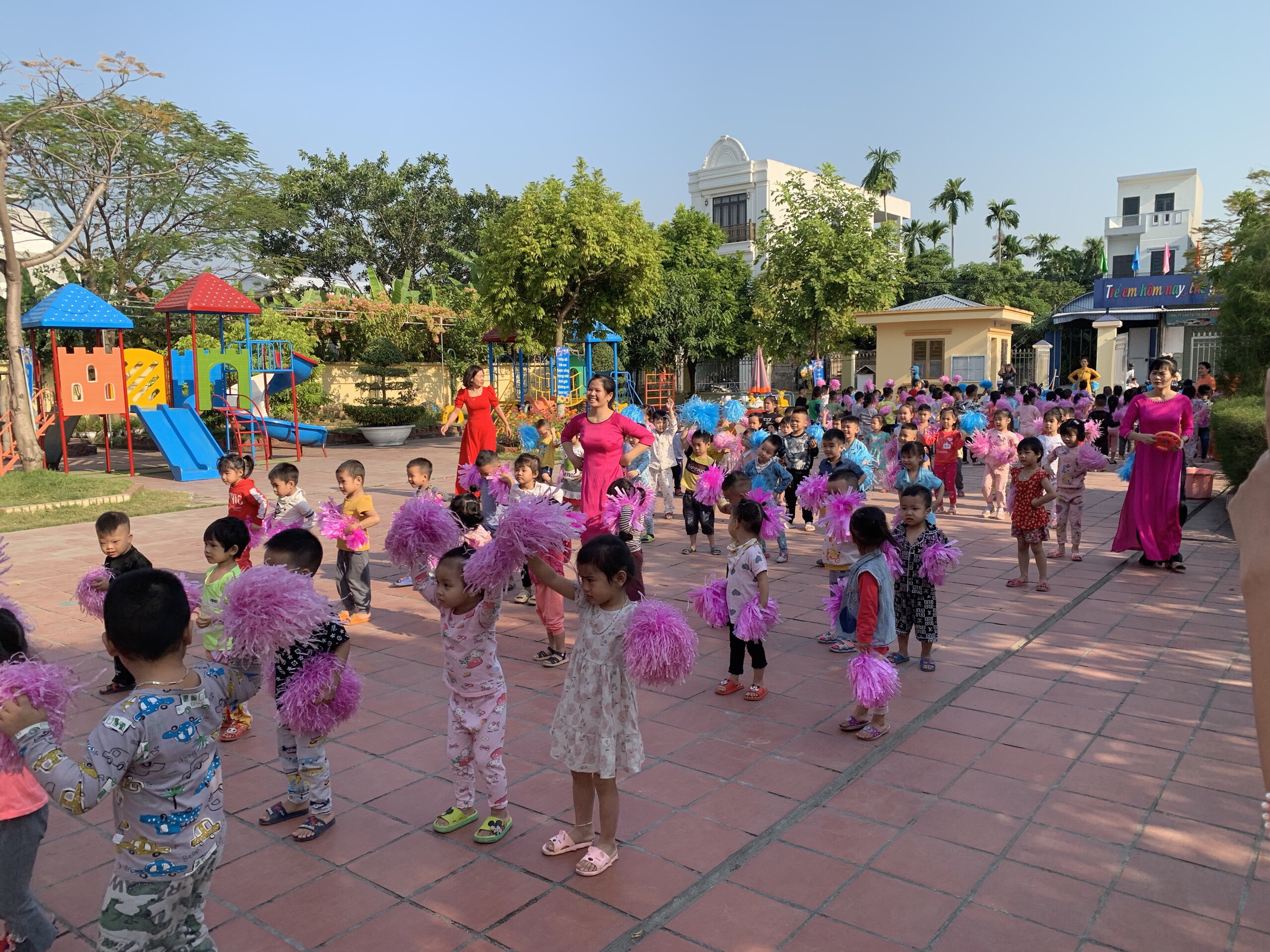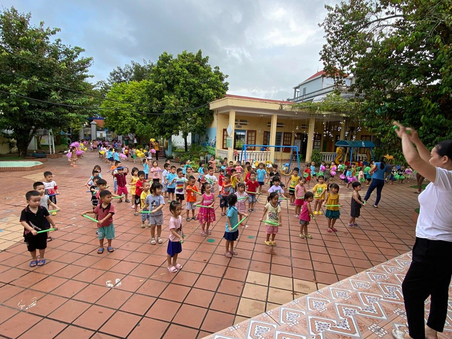 Giờ thể dục sáng của các cháu trường mầm non Lê Thiện