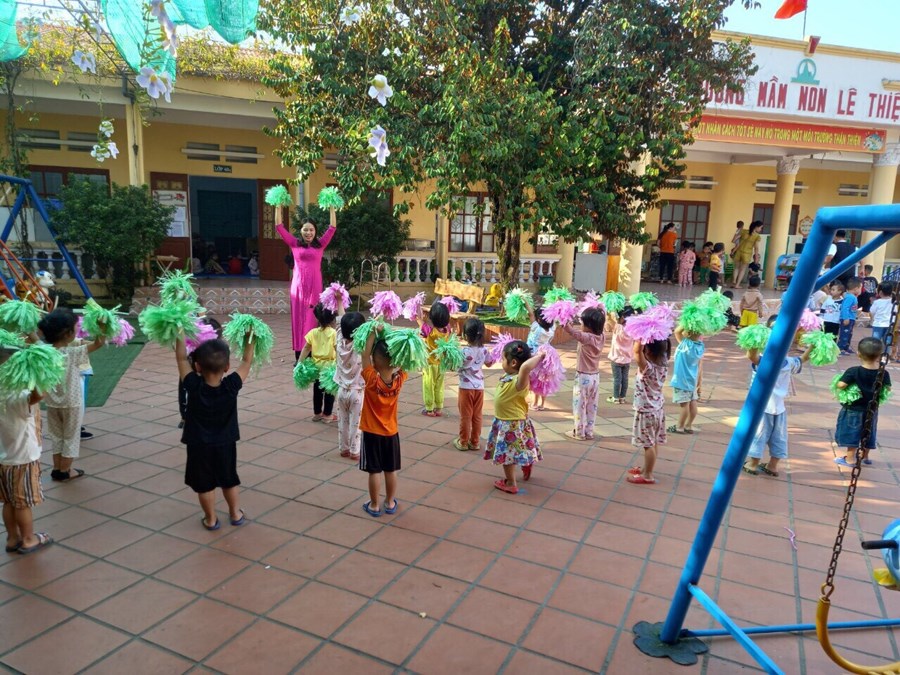 Sau đây là hình ảnh giờ tập thể dục sáng của các cháu trường mầm non Lê Thiện