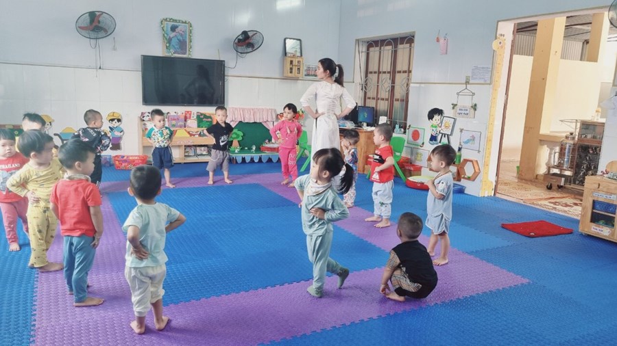 trường được các cô giáo dạy các bài tập đơn giản, tạo cho trẻ một tâm