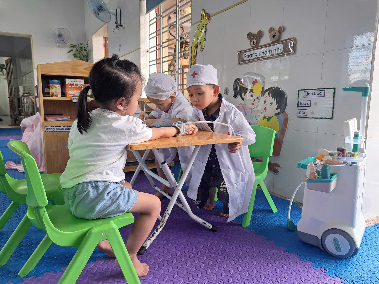 Trẻ em đến trường không chỉ cần chăm sóc mà còn được học, quan trọng nhất là hoạt động vui chơi. Chơi là hoạt động chủ đạo của trẻ mẫu giáo, trò chơi mang lại niềm vui cho trẻ và cuốn hút trẻ được tham gia nhiều nhất. “Học bằng chơi, chơi mà học” Qua trò chơi trẻ có thể bộc lộ đầy đủ khả năng của mình và những khả năng sẽ được phát triển mạnh mẽ nhất khi trẻ làm một điều gì đó một cách tự nguyện.Vì vậy, cô giáo sẽ đóng một vai trò hướng dẫn, tổ chức cho trẻ chơi.