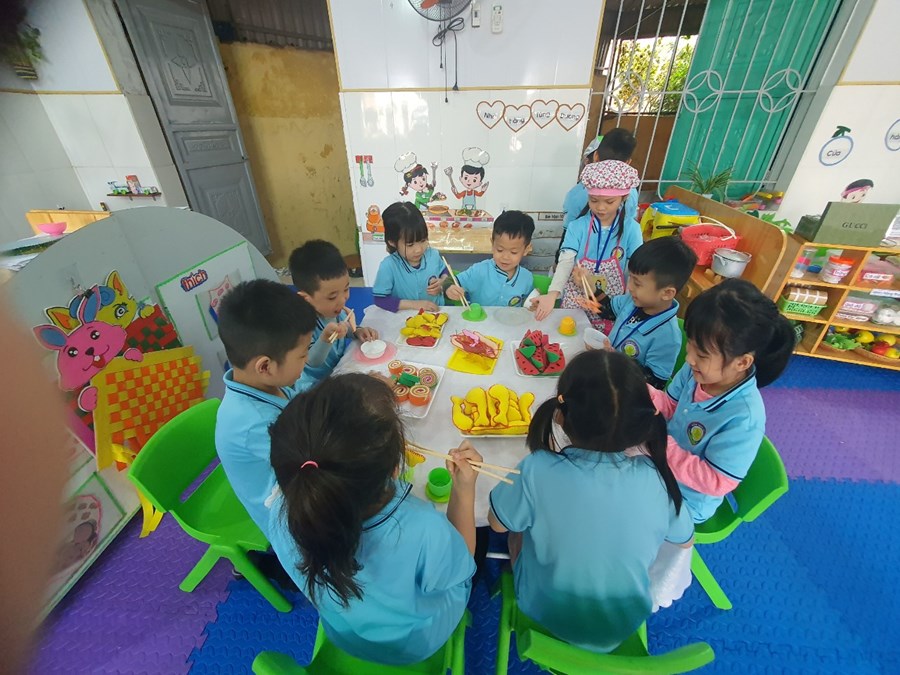 Các bé vui chơi chủ yếu theo khả nang của bé, nhu cầu mong muốn bắt trước, muốn làm người lớn. Tại lớp 5A1 các bé được tham gia hoạt động góc với các góc chơi: góc cây dựng, góc phân vai, góc thiên nhiên, góc học tâp, góc làm quen với máy tính... Nhờ hoạt động góc bé được tham gia vào thế giới người lớn thu nhỏ theo cách của riêng mình. Hoạt động này còn có giá trị to lớn và là phương tiện để giáo dục trẻ phát triển toàn diện về mọi mặt cả về nhân cách và trí tuệ cho trẻ mầm non.