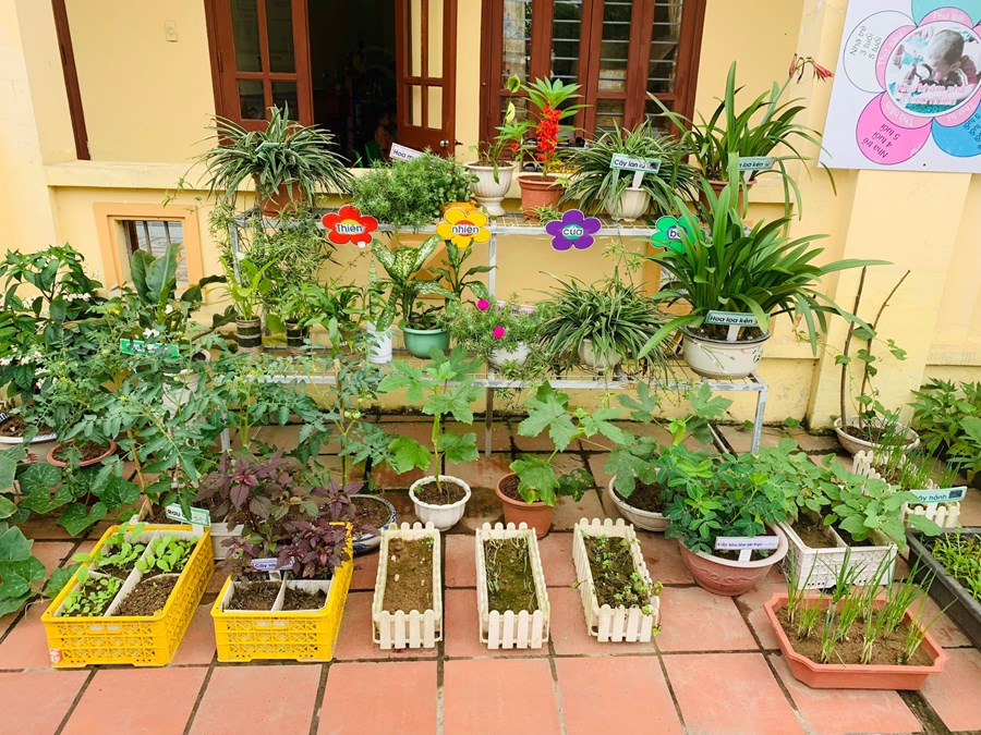 Môi trường ngoài lớp học được quan tâm, nhất là thực hiện nhiệm vụ trọng tâm năm học với nội dung xây dựng mô hình “Trường học Xanh – An toàn – Thân thiện”, nhà trường bố trí trồng các loại cây xanh phù hợp, không độc hại; mùa nào cây, hoa ấy đảm bảo che phủ màu xanh 4 mùa, hệ thống cây xanh, hoa, cây cảnh được cắt tỉa thường xuyên đảm bảo độ an toàn, thẩm mỹ phù hợp với khuôn viên và đặc thù môi trường sư phạm. Các góc chơi trong và ngoài khu vực lớp học được trang trí phù hợp, đẹp mắt có đủ đồ dùng, đồ chơi phục vụ các chủ đề trong năm là điều kiện tốt nhất thu hút trẻ đến trường.
