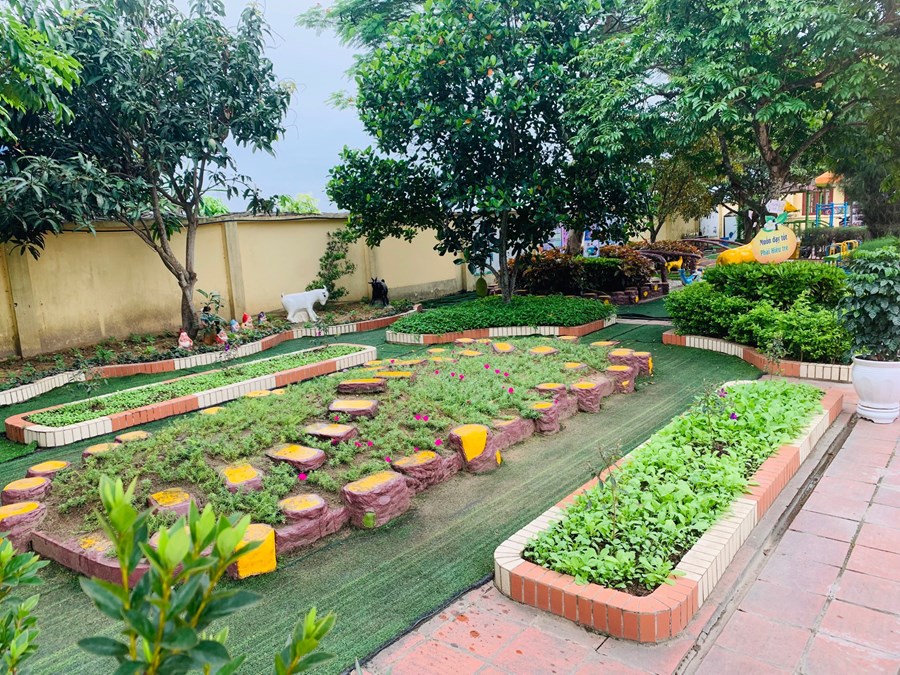 Từ việc việc bố trí khuôn viên, hệ thống sân chơi, cây xanh, vườn hoa, cây cảnh, vườn rau hài hòa từ cổng vào cho đến các khu hoạt động vui chơi trải nghiệm, các trang thiết bị đồ chơi ngoài trời được bố trí hợp lý, đảm bảo điều kiện thuận lợi cho trẻ hoạt động nhìn như một công viên thu nhỏ tại vườn trường đã tạo nên vẻ đẹp xanh, mát, một không gian thoáng đãng, gần gũi và đặc biệt mang lại sự say mê hấp dẫn cho trẻ khi đến trường mầm non.