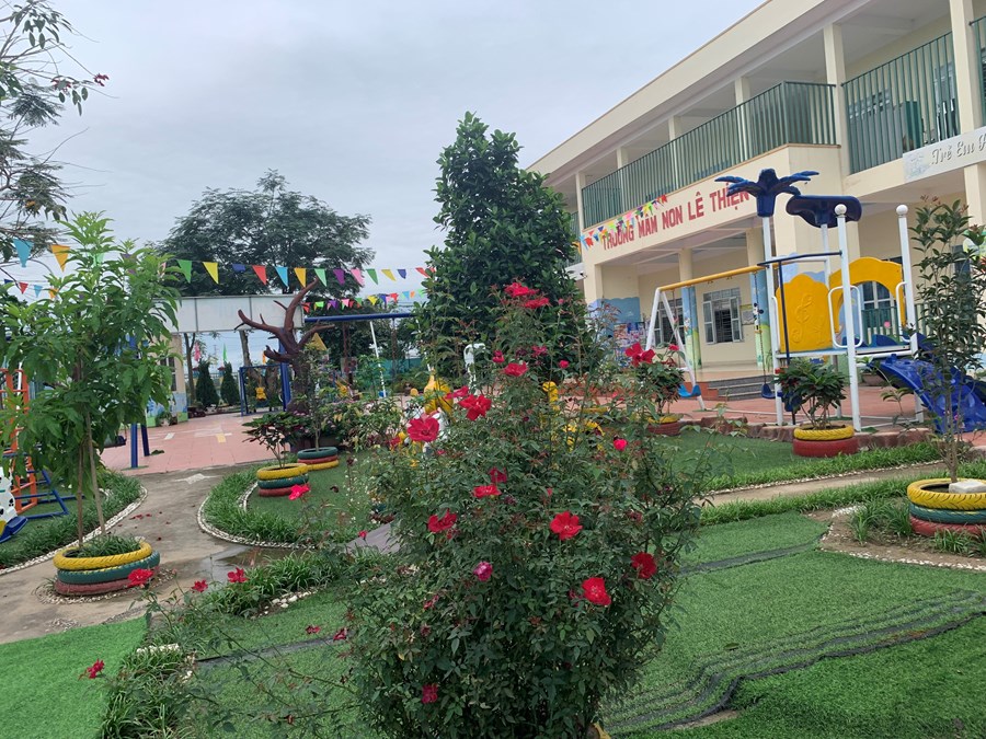 Năm học 2022-2023, Trường mầm non Lê Thiện đã đẩy mạnh phong trào thi đua xây dựng môi trường xanh- an toàn - thân thiện .Thực hiện phong trào này Ban giám hiệu nhà trường cùng các cô giáo đã phối hợp chặt chẽ với phụ huynh học sinh xây dựng môi trường hoạt động trong lớp học, xây dựng môi trường cây xanh bóng mát, vườn cây ăn quả ngoài sân trường và sưu tầm chăm sóc chậu hoa cây cảnh, “vườn rau của bé”.