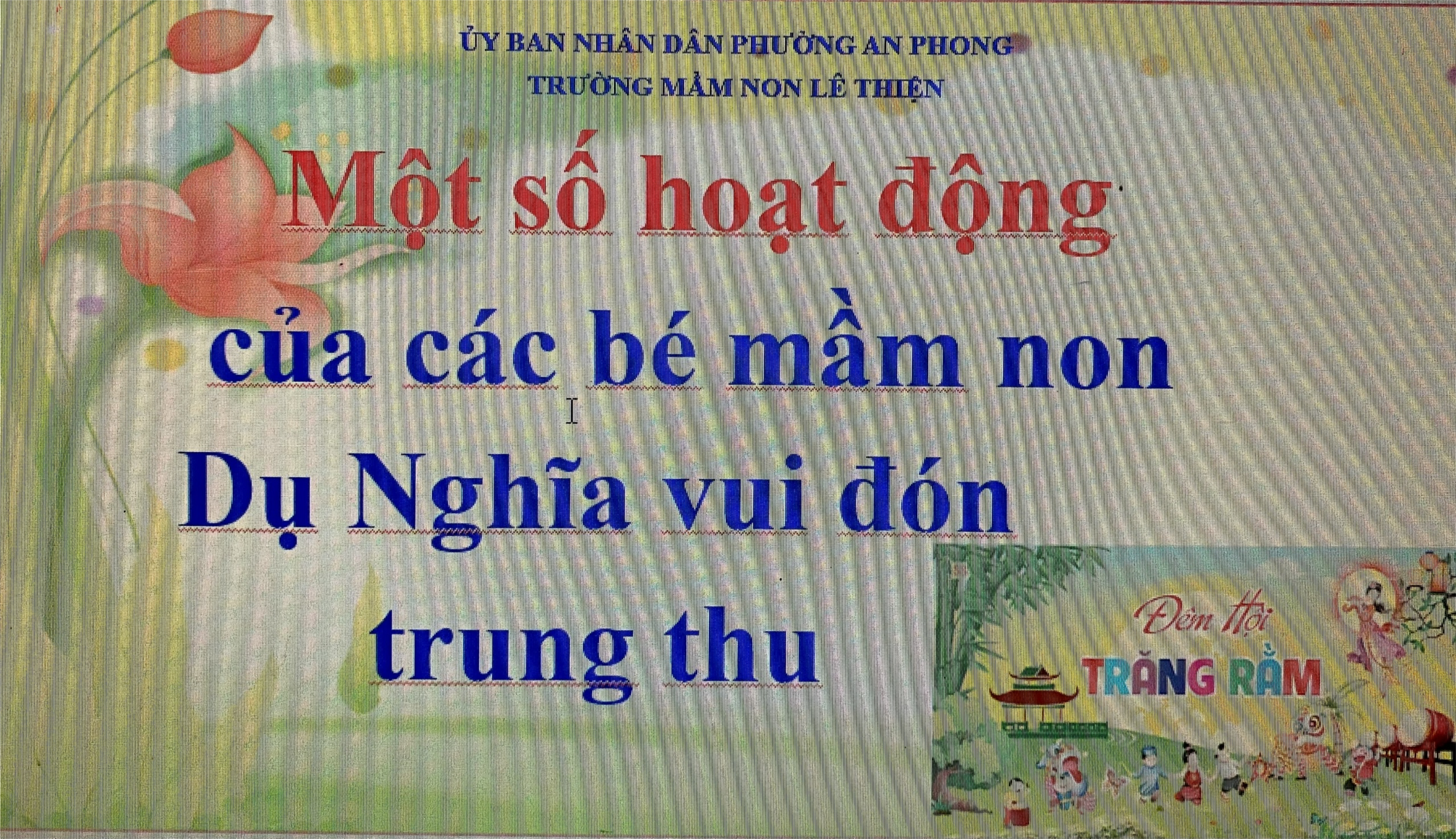 Hòa chung không khí tưng bừng phấn khởi của thiếu nhi cả nước chào đón Tết Trung Thu, ngày hội trăng rằm các bé háo hức được tham gia nhiều hoạt động vui chơi hấp dẫn, bổ ích, giàu tính truyền thống. Các bé trường mầm non khu Dụ Nghĩa hăng hái tham gia một số hoạt động vui đón trung thu. Dưới đây là một số hình ảnh của các con
