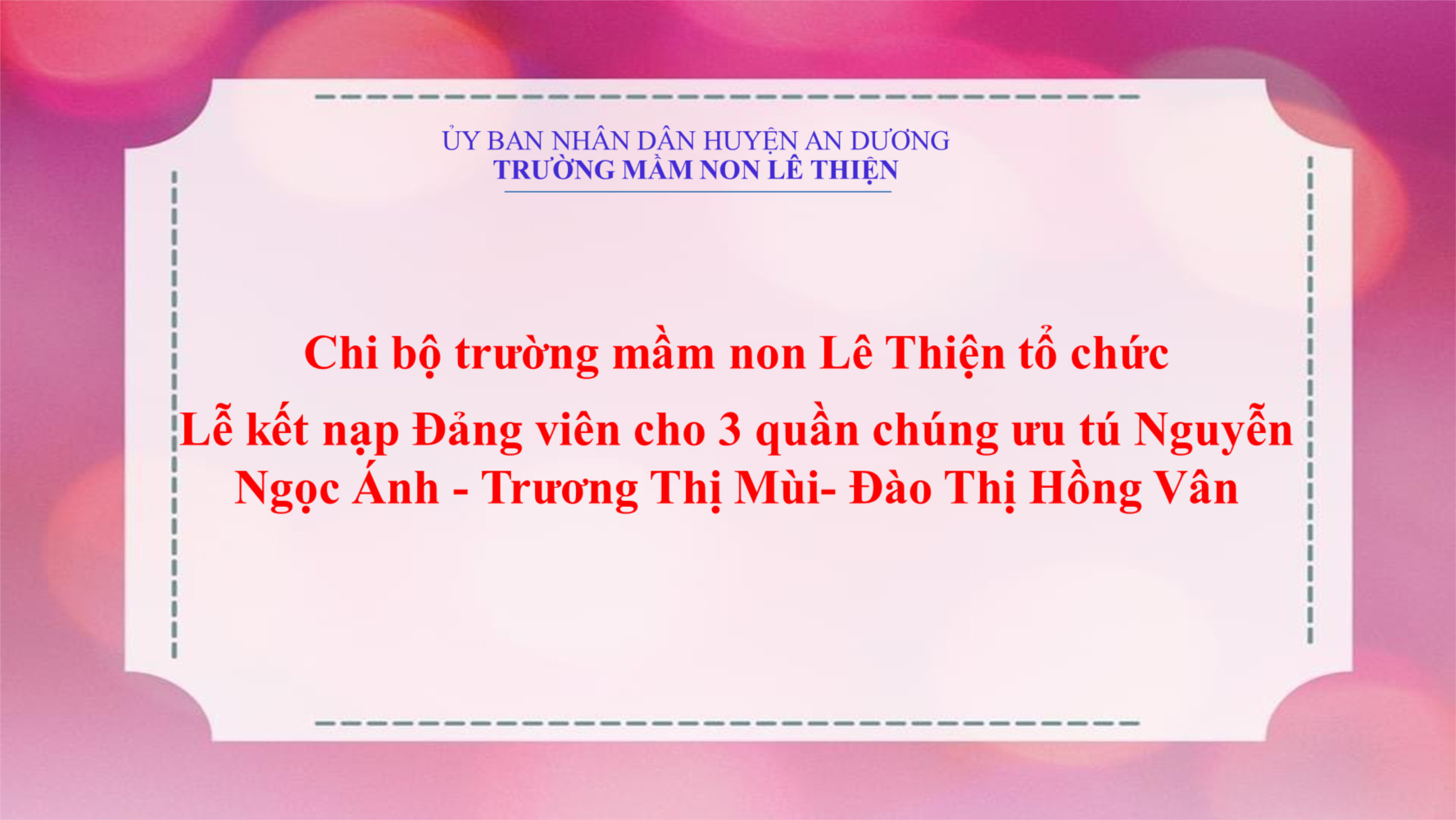 chúng Nguyễn Ngọc Ánh, quần chúng Trương Thị Mùi, quần chúng Đào Thị Hồng Vân được kết nạp vào Đảng cộng sản Việt Nam ngày19/5/2024.