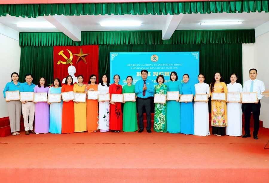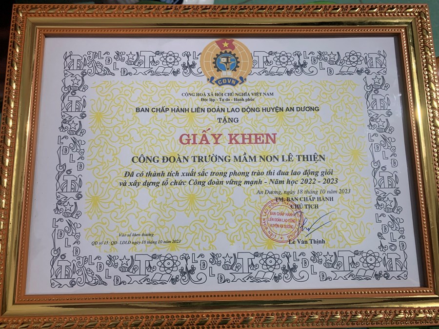 nhận giấy khen của Liên đoàn lao động huyện dành cho tập thể Công đoàn