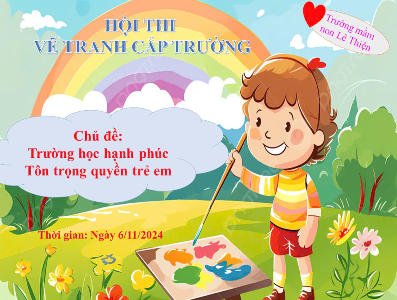 Hưởng ứng cuộc thi vẽ tranh với chủ đề “ Trường học hạnh phúc- Tôn trọng quyền trẻ em” do PGD&ĐT Huyện An Dương phát động, trường mầm non Lê Thiện phát động cuộc thi vẽ tranh cấp trường với chủ đề “Trường học hạnh phúc - tôn trọng quyền trẻ em” dành cho các bé có độ tuổi từ 3 đến 5 tuổi đang học tại trường Mầm non Lê Thiện