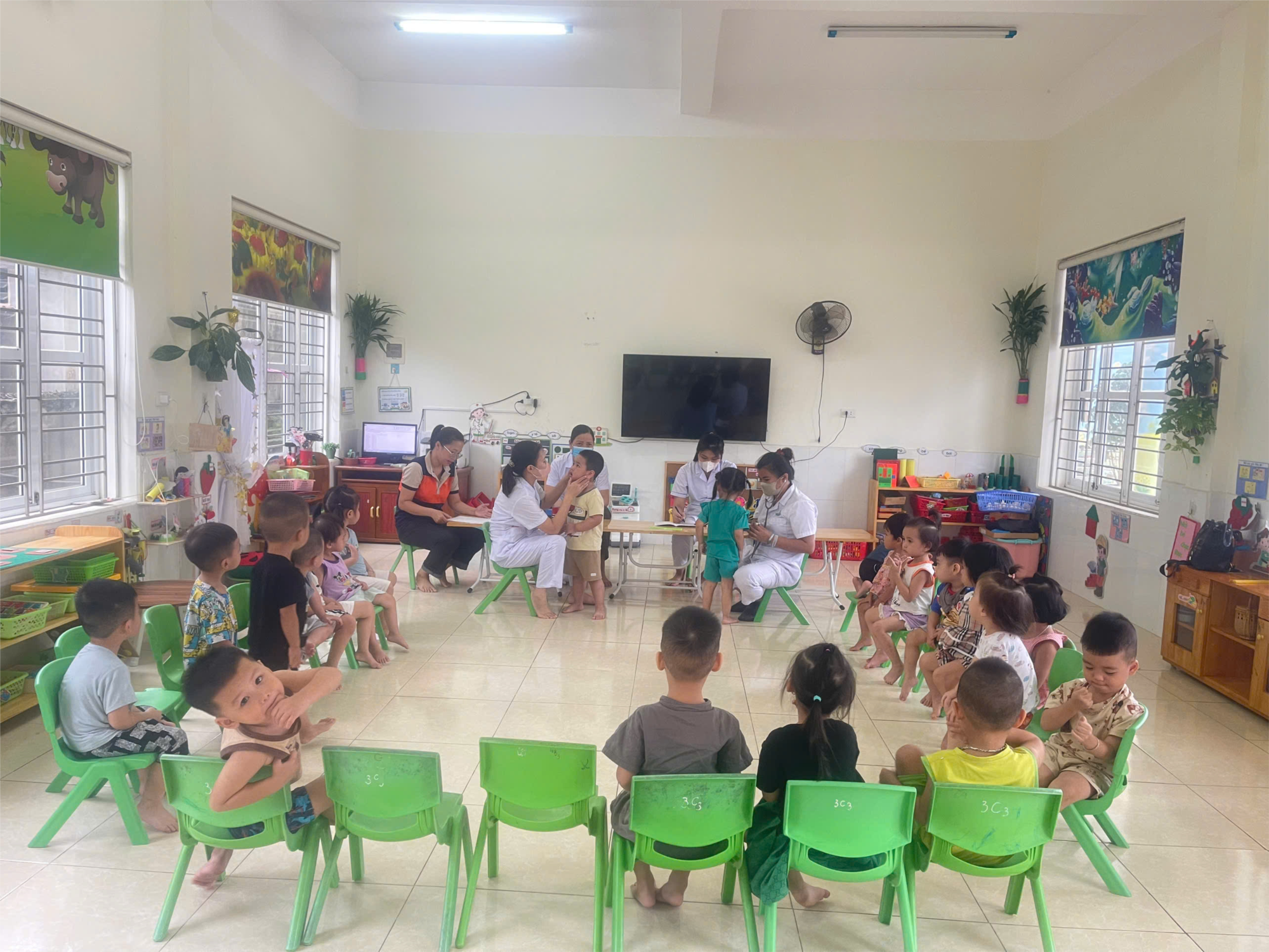 Trong các hoạt động của nhà trường, công tác chăm sóc sức khoẻ cho trẻ là một việc làm luôn được nhà trường đặc biệt quan tâm. Từ nhiều năm nay, việc tổ chức khám sức khoẻ định kỳ cho trẻ đã được nhà trường duy trì thành nề nếp thực hiện thường xuyên theo kế hoạch trong năm học.
