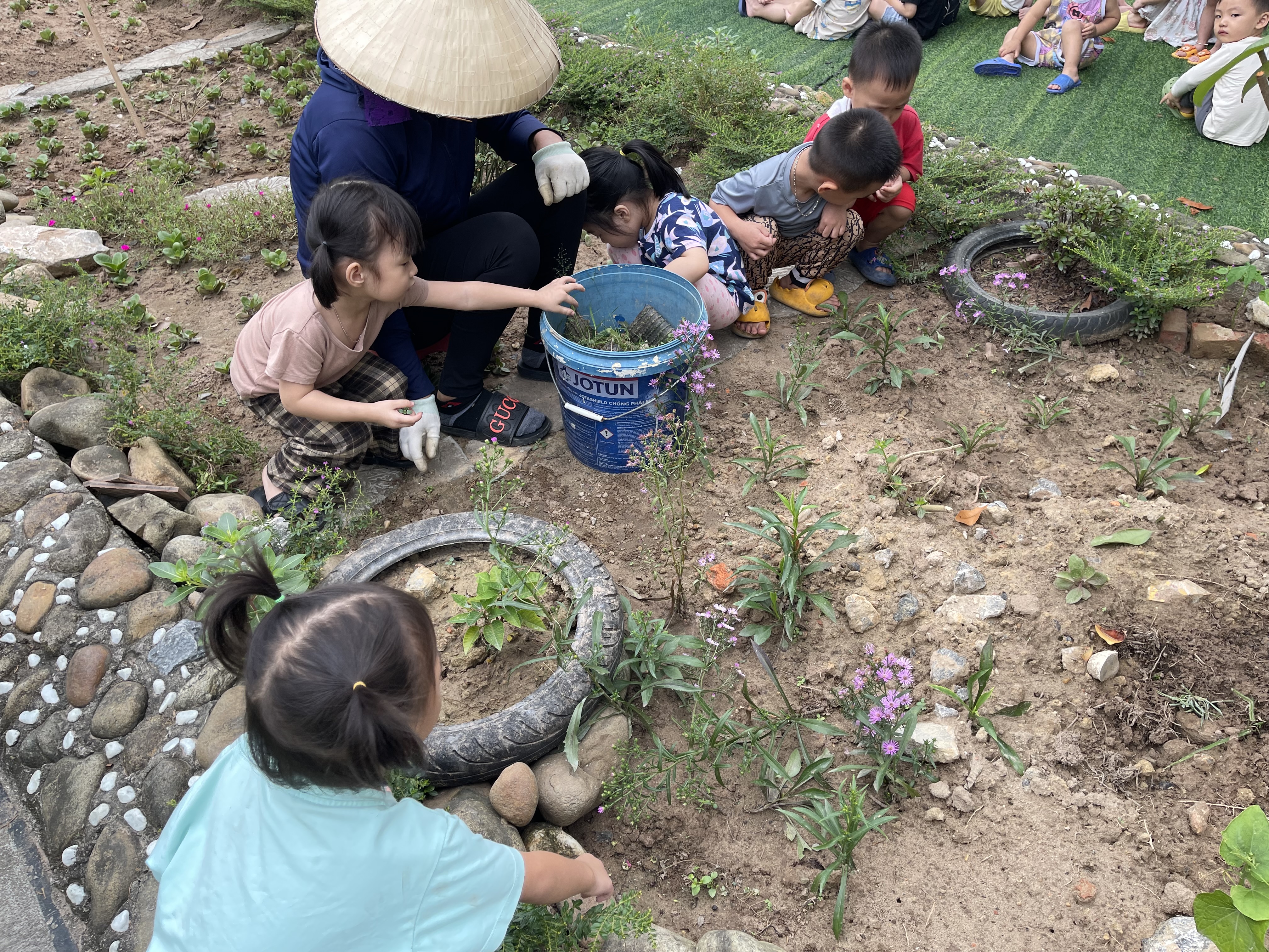 Trẻ mầm non rất dễ có hứng thú với lao động từ những việc đơn giản như thu dọn đồ chơi hay tự bỏ quần áo bẩn vào chậu hay đi giày dép, tự rửa ca… trẻ thường làm với thái độ rất tích cực. Trong các giờ học như hoạt động ngoài trời, hoạt động góc, hoạt động học… ngoài việc tổ chức cho trẻ thu dọn dụng cụ học tập, lau dọn các góc chơi, các cô còn tổ chức cho trẻ nhặt rác ở bồn hoa, nhặt lá cây, nhỏ cỏ, tưới cây, lau lá. Cô luôn tạo cơ hội cho trẻ tự lựa chọn và giải quyết những công việc trẻ thích. Qua hoạt động lao động tạo cho trẻ sự nhanh nhẹn và thích ứng với môi trường tự nhiên đồng thời trẻ tự tin, mạnh dạn hơn trong cuộc sống.