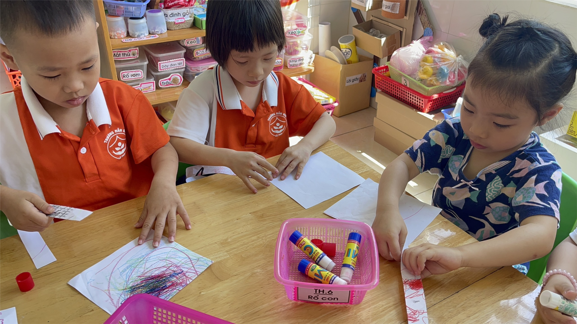 Dưới đây là một số hình ảnh các bé lớp 3C4 cùng nhau dán những chiếc diều: