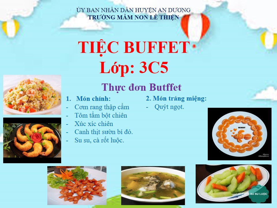 Sau đây là video một số hình ảnh cô cùng các con lớp 3C5 trường mầm non Lê Thiện cùng nhau chuẩn bị và thưởng thức bữa tiệc buffet của lớp mình: