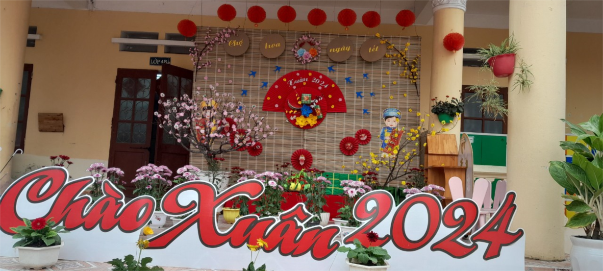 Cứ mỗi độ Tết đến, xuân về là không khí tưng bừng náo nức lại giấy lên trong lòng mọi người, mọi nhà tấp nập với không khí phấn khởi tưng bừng trang trí để đón Tết. Hòa chung với không khí tưng bừng đón Tết đó, cô và trò lớp 4B2 đã trang trí Tết với nhiều hoạt động sôi nổi, tạo nên một môi trường đón Tết ấm cúng, mang đậm hương vị quê hương. Cô giáo đã tổ chức cho trẻ khám phá chủ đề Tết thông qua các hoạt động tích hợp. Trẻ thực sự được trải nghiệm nội dung trang trí môi trường lớp học để đón Tết.