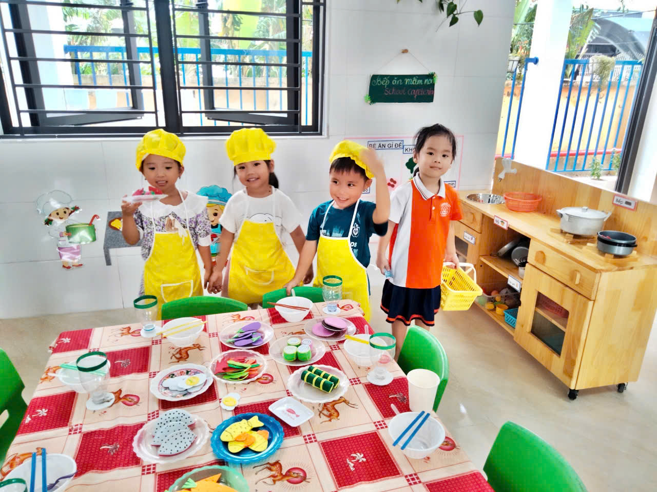 Hình ảnh các con chơi góc nấu ăn