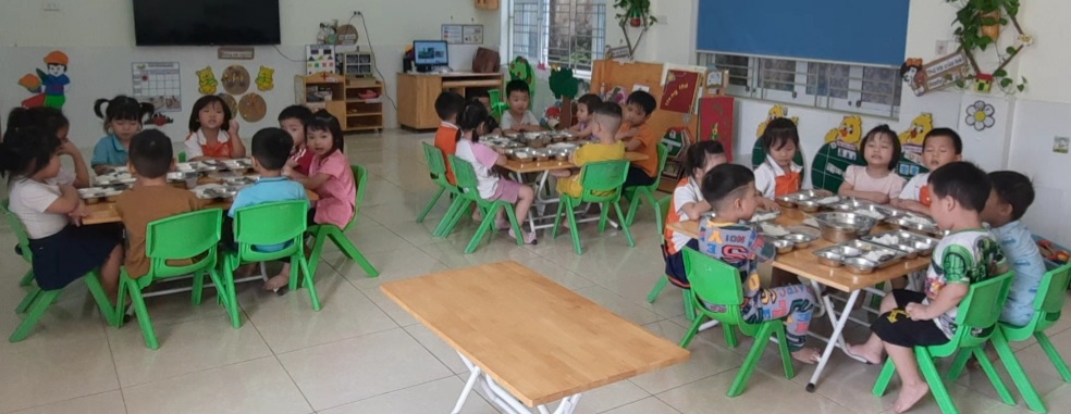 Sau đây là một số hình ảnh giờ ăn trưa của các bé 4B5 Thôn Phí Trường mầm non Lê Thiện.