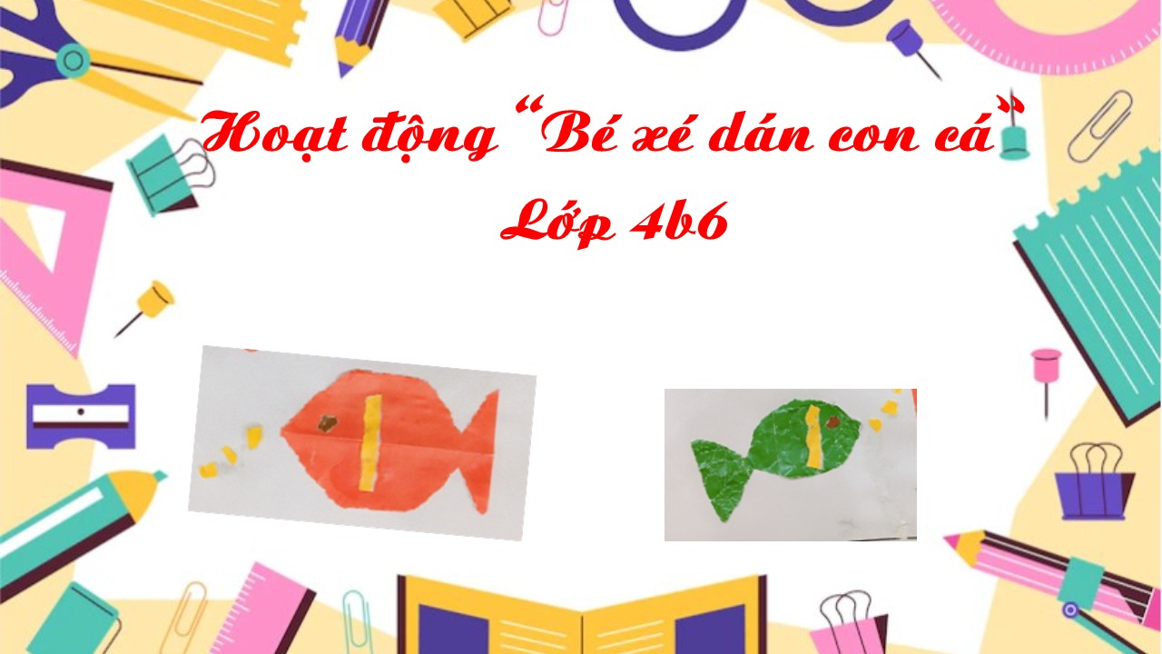 Hình ảnh các bé lớp 4B6 tham gia hoạt động xé dán con cá cùng các bạn:
