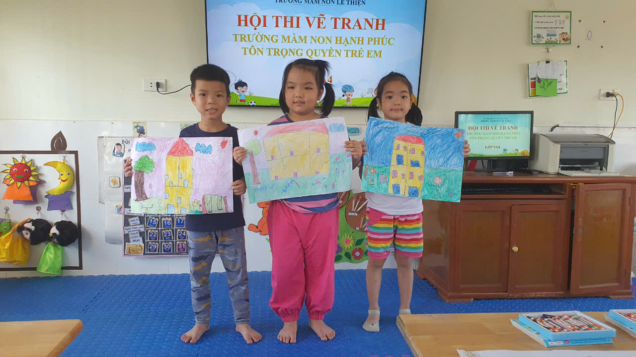 Sáng ngày 01/11/2024 lớp 5A4 trường mầm non Lê Thiện đã tổ chức “Hội thi vẽ tranh” với chủ đề “Trường mầm non hạnh phúc - Tôn trọng quyền trẻ em”. Hội thi là sân chơi lành mạnh, bổ ích cho các bé. Nhằm tạo cơ hội để các bé thể hiện năng khiếu hội họa, khơi dậy lòng yêu cái đẹp, khả năng sáng tạo nghệ thuật thông qua hoạt động vẽ. Hội thi sẽ là cơ hội để các bé lan tỏa thông điệp về môi trường giáo dục hạnh phúc - Tôn trọng quyền trẻ em.