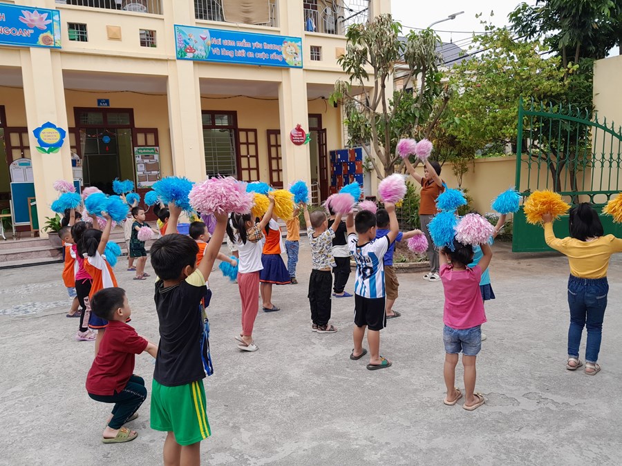 Tập thể dục sáng của các bé ở trường mầm non Kim sơn – Lê Thiện