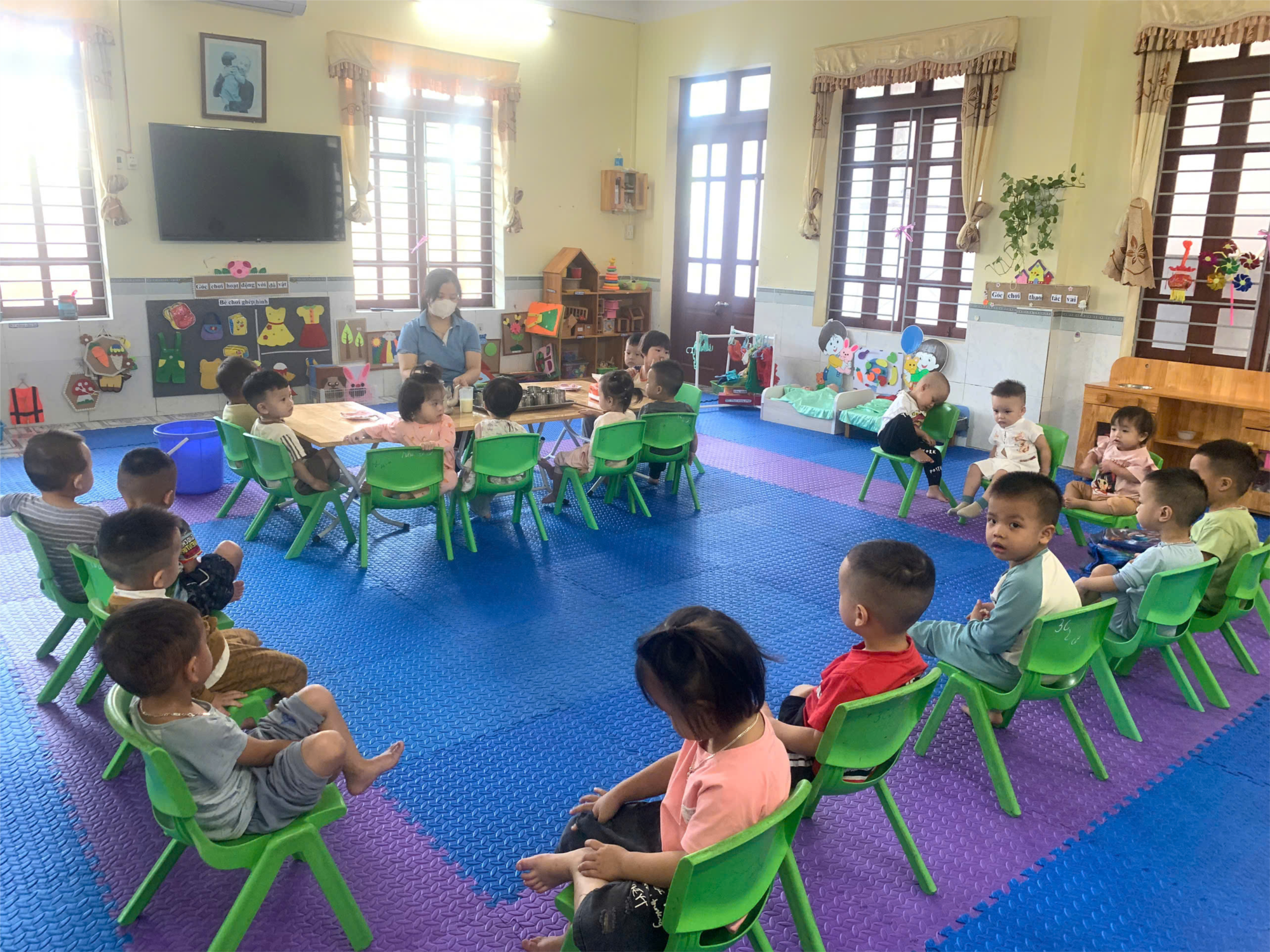Dưới đây là một số hình ảnh của các bé lớp NT2 các hoạt động vệ sinh ăn ngủ tại lớp.